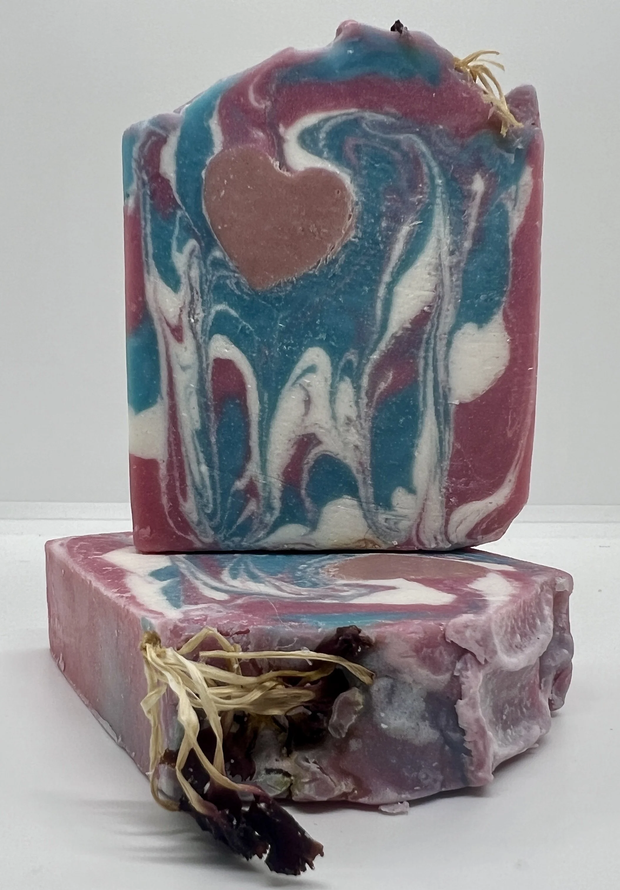 Gentle, nourishing, moisturizing soap infused with a calming lavender scent. A lovely red heart is nestled inside to remind you just how truly special you are. Crafted with care using natural ingredients like olive oil, creamy coconut oil, rich mango butter, and soothing lavender essential oil for a blissful, skin-loving experience.